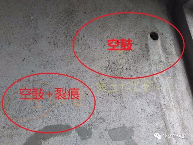 空鼓產生的原因主要有四個:一是基層墻體表面未處理。墻體表面黏著的塵土、殘余砂漿和澆筑時的隔離劑未清理干凈,光滑的混凝土表面未涂刷界面劑或進行噴漿拉毛,抹灰前未進行提前灑水充分潤濕等。二是墻體養護時間不夠就急于抹灰。墻體未進行充分變形就開始抹灰,基層與抹灰層收縮不一致導致空鼓。三是單層抹灰過厚。墻體平整度不好或有缺損時,沒有提前處理,抹灰時急于求成,一次成活,抹灰層過厚,造成其收縮應力大于砂漿黏結力,產生空鼓。四是抹灰材料使用不當。抹灰砂漿強度與基層墻體強度不匹配,收縮率相差過大[2]。