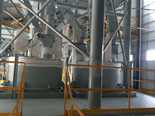 粉體儲存在中轉倉后,通過羅茨風機和星形給料閥、球閥等將粉體輸送到指定粉體倉中儲存。管道分叉處采用特殊結構,確保在輸送不同粉料時無混料現象。每一個粉體儲存倉上都安裝有布袋式脈沖除塵器和防爆安全閥、物料高低位指示,用于確保環境及安全。